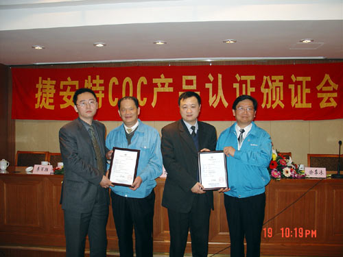 2004年2月20日,捷安特(中国)有限公司正式获得中国质量认证中心(CQC)颁发的编号为03126000001的CQC自愿性产品认证证书,成为中国自行车行业第一家获得该项认证的企业。