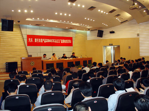 为了全面做好2004年汽车与摩托车企业监督检查工作,帮助企业了解监督检查的具体要求,CQC南京分中心在总部检查处和江苏大学汽车摩托车监督检测站的支持下,6月4日在江苏大学科技会馆隆重举行了“2004年度汽车与摩托车产品3C认证监督检查说明会”,来自江苏地区汽车摩托车行业近两百名代表参加了此次会议。通过此次活动,参会企业代表全面了解了今年监督检查的具体要求,加深了对3C认证工厂质量能力保证能力的理解,同时会议也为客户与CQC提供了沟通和交流的平台。