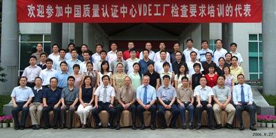 为扩大国际认证技术交流,加强中国质量认证中心(英文缩写CQC)与德国电器电子和信息技术协会(英文缩写VDE)的友好合作关系,2006年6月26日,VDE代表团应邀参加CQC在杭州举办的VDE工厂检查员培训班。来自CQC检查处、产品一处、培训中心、各分中心的54名检查员参加了培训。