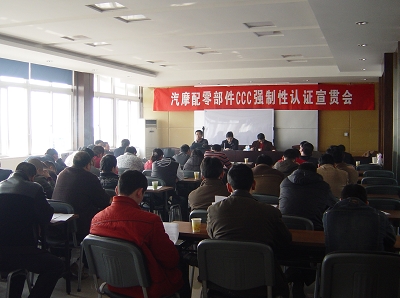 为全面推动机动车零部件强制性产品认证,2007年1月30日,CQC杭州分中心会同瑞安市质量技术监督局,在瑞安召开了第二次汽摩配零部件CCC认证宣贯会,当地60余家汽摩配企业参加了会议。