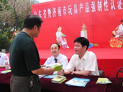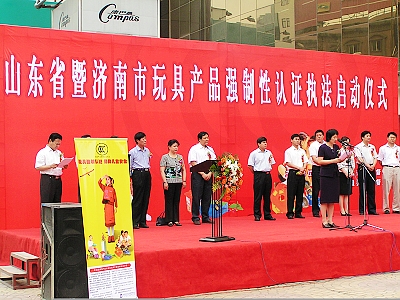 为进一步宣传玩具产品强制性产品认证制度的相关知识,打击逃避认证、虚假认证的投机行为,提高社会各界对3C认证制度的认知度,推动玩具产品3C认证走向规范化、制度化,保障少年儿童的安全健康。2007年6月1日,山东省质监局联合济南市质监局举行了“山东省暨济南市玩具产品强制性认证执法检查启动仪式”。受山东省质监局邀请,中国质量认证中心(英文缩写CQC)青岛分中心参加了本次仪式。