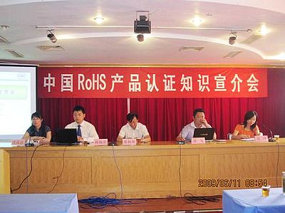 2009年6月12日,中国质量认证中心(英文缩写CQC)上海分中心与安徽省产品质量监督检验研究院、安徽省天长市质量技术监督局联合在天长市举办“CQC RoHS产品认证知识宣介会”。安徽富华电子、天长市富达电子、金鹏电子、徽宁电器等企业的近80位代表参会并详细了解了RoHS认证相关法规要求以及CQC RoHS认证的申办程序。