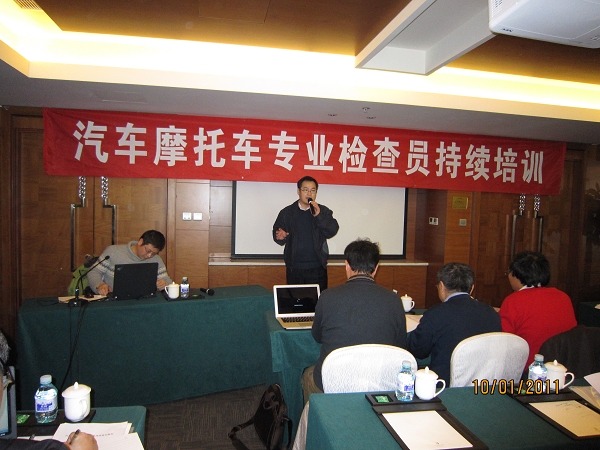 2011年1月10日,中国质量认证中心举办机动车专业检查员持续培训。来自中心及华北地区检测机构的40余名机动车专业CCC工厂检查员参加培训。