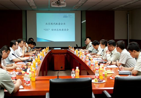 2011年7月4日,中心与北京现代汽车有限公司联合召开现代汽车零部件供应商CCC培训总结与研讨会,北京现代相关负责人以及14家零部件生产企业代表参加会议。会议就建立信息沟通机制、中心与现代汽车合作交流等方面进行探讨。(工厂检查部 供稿)