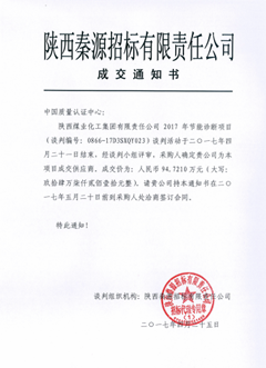 2017年4月26日,西安分中心中标陕西煤业化工集团有限责任公司(简称“陕煤集团”)2017年节能诊断项目。