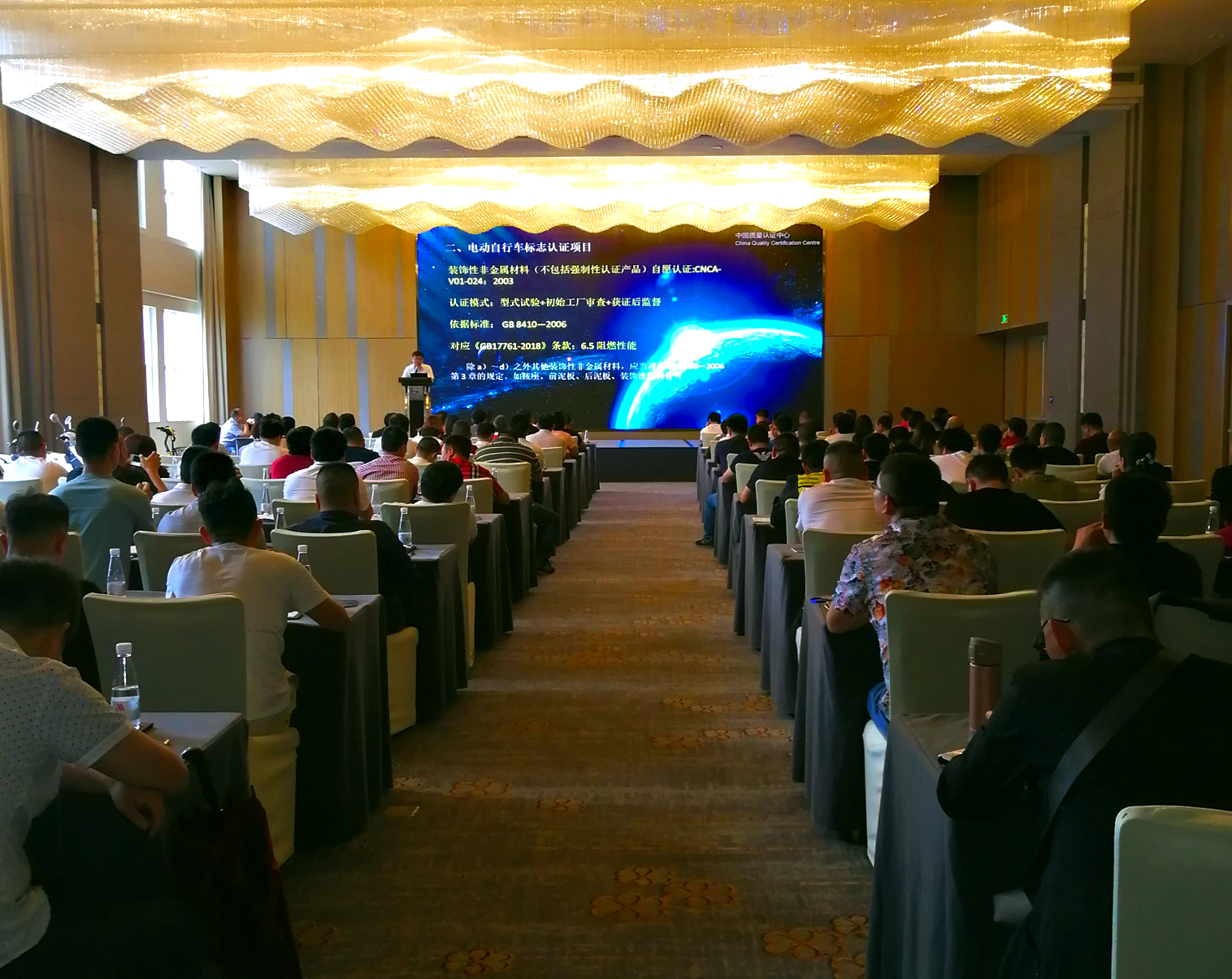 2018年5月31日,中心和黄岩电动车塑件协会在浙江省台州市召开了电动自行车零部件自愿性认证培训会,电动自行整车和零部件生产企业的代表200余人参加会议。