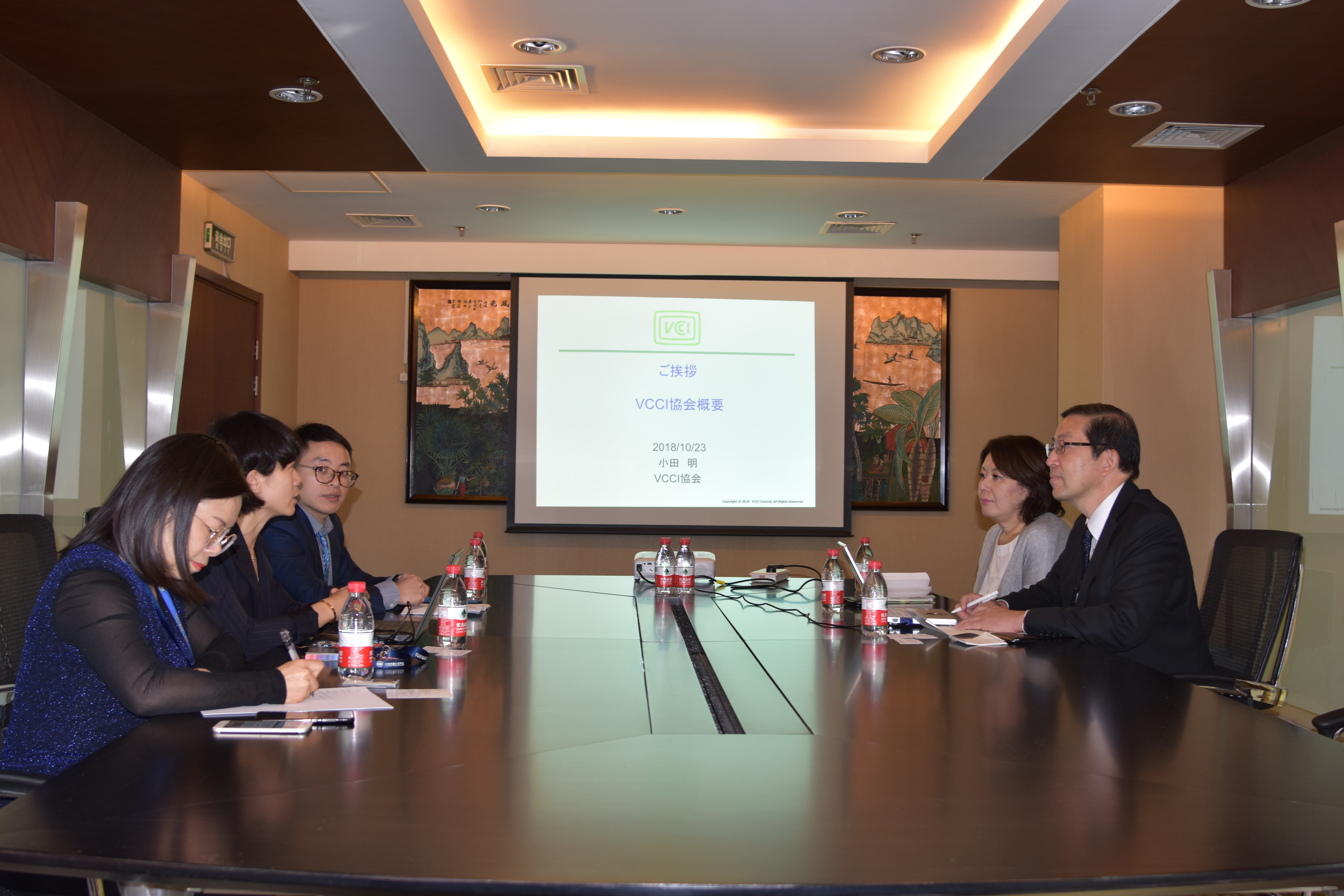 2018年10月23日,日本电磁干扰控制委员会(VCCI)代表来中心开展工作交流。中心产品认证一部、国际业务部代表参与会谈。