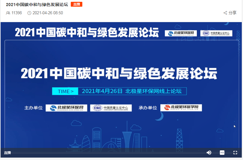 4月26日,中心与北极星环保网联合举办了2021中国碳中和与绿色发展论坛。