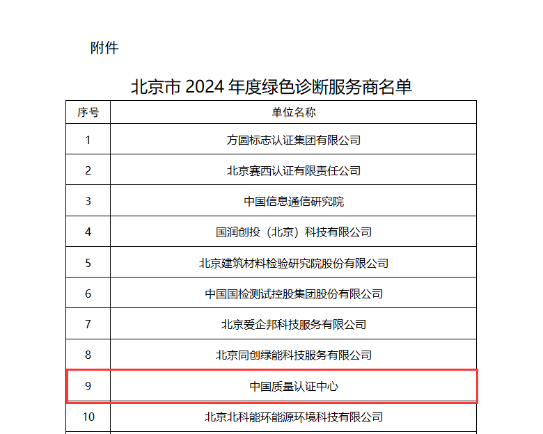 中国质量认证中心作为质量服务的“排头兵”,在绿色低碳发展领域积累了丰富的服务和实践经验。此次连续获得北京市绿色诊断服务商资质也是对中国质量认证中心技术实力与服务成效的充分认可。
