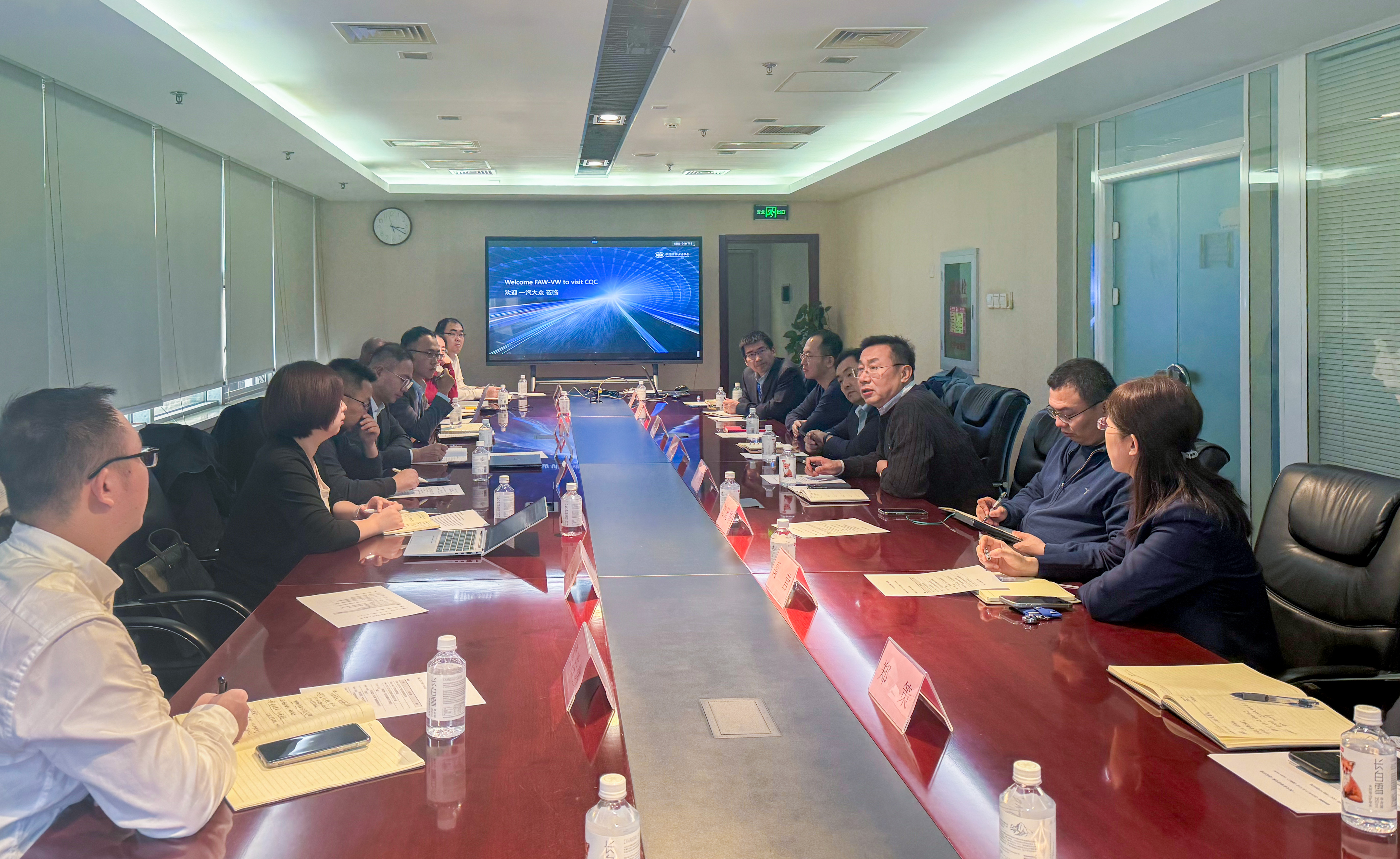 2024年11月12日,一汽-大众汽车有限公司技术开发部、质量保证部一行到访中国质量认证中心。中国质量认证中心产品认证三部负责人对一行人的来访表示欢迎,双方围绕整车及零部件认证相关工作展开了交流研讨。