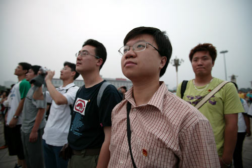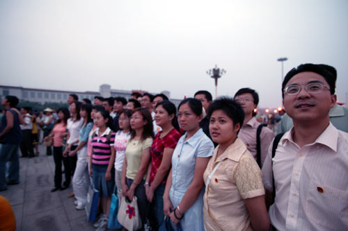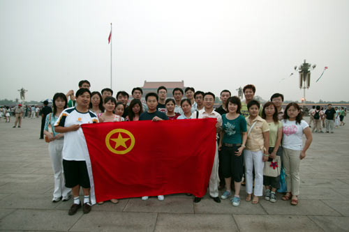 7月10日凌晨,在天安门广场,伴着东升的太阳,CQC全体团员齐唱国歌,向徐徐升起的五星红旗行注目礼。