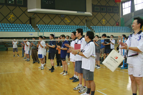 2003年9月下旬,中国质量认证中心(CQC)职工羽毛球比赛正式拉开帷幕,CQC李怀林主任、车有高副主任、刘常生副主任参加了开幕式,并带头报名参加中年组比赛。 比赛共216人报名,分中年组和青年组,进行单打及双打两个项目的比赛。经过第一轮的苦战,现有121人进级。第二轮比赛计划于10月中旬举行。 此次比赛是由CQC工会牵头组织的,旨在促进职工加强体系锻炼,增强体质,提高协作精神。 |