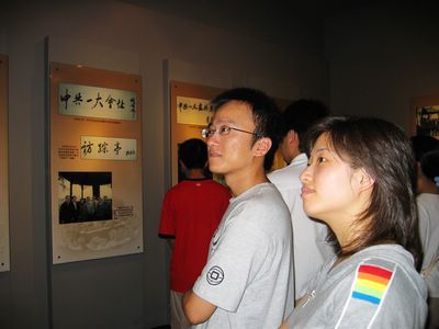 在参观结束之后的讨论中,大家纷纷表示这85年的光辉历程中,共产党从一个只有五十多个党员的组织发展到现在拥有几千万的大党,其间经历了多少磨难,又有多少人为此付出了自己宝贵的生命。我们应该学习前辈们为国为民的崇高品质,牢记“两个务必”,牢记“八耻八荣”,全面贯彻落实科学发展观,努力工作,报效祖国,报效社会,不忘历史。