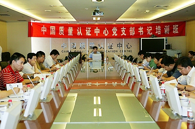 为加强中心党建工作,进一步提高党支部一班人的思想政治素质和支部工作能力,增强党支部的生机和活力,充分发挥好党支部的战斗堡垒作用,7月12日,中国质量认证中心(英文缩写CQC)党委举办了党支部书记、委员培训班。培训班组织观看了由中央党校党建教研室张荣臣等知名教授主讲的《新时期党支部书记培训专题讲座》,为保证学习效果,提高实际运用能力,培训班还配发了《党支部书记培训教材》以及中心党办编制的《中国质量认证中心党支部工作手册》。