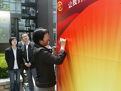 王克娇主任出席活动启动仪式并表示,勤俭节约是中华民族的传统美德,更是当前CQC团员青年为抗震救灾贡献力量的最好方式。无情灾难面前,CQC广大团员青年要以青春之心守望相助,以青春之力众志成城,与灾区人民一起携手共渡难关!随后,在王克娇主任的带领下,团员青年们纷纷在联名板上签下姓名和对灾区人民的诚挚祝福。