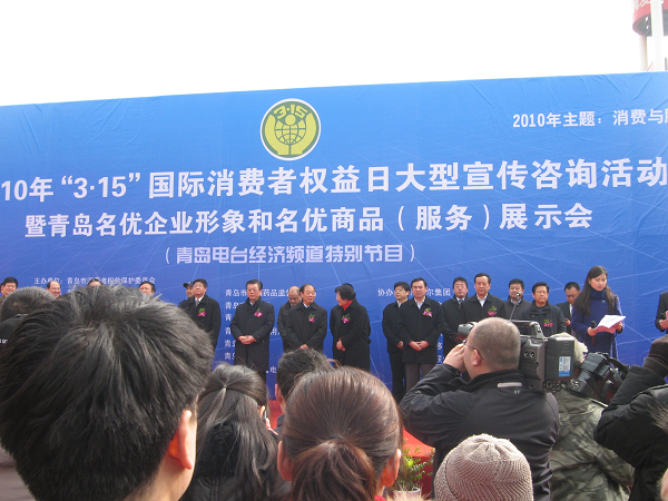 2010年3月15日,中国质量认证中心(英文缩写CQC)青岛分中心派员参加了由青岛市消费者权益保护委员会组织的“消费与服务—2010年“3.15”国际消费者权益日大型宣传咨询活动暨青岛名优企业形象和名优商品(服务)展示会”。