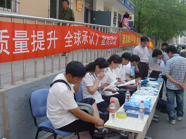 2010年6月9日,在第三个“世界认可日”来临之际,中国质量认证中心(英文缩写CQC)沈阳分中心积极参加沈阳市质量技术监督局组织的“质量提升、全球承认”宣传进社区活动。