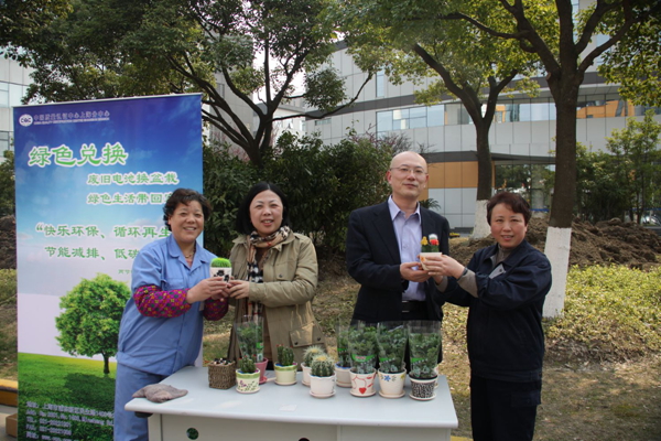 2013年3月12日,上海分中心工会在办公园区进行“废旧电池换盆花,绿色生活带回家”的电子废弃物回收绿色兑换活动。活动引起园区企业员工和附近居民的广泛关注,当天共换回废旧电池100余节。