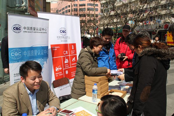 为贯彻落实2014年“践行质检为民 优化消费环境”的“3·15”活动主题,中国质量认证中心在全国多地开展了形式多样的公益宣传活动,内容涉及产品质量安全、节能低碳环保、认证认可知识等,活动取得了很好效果,在普及健康安全的生活理念的同时,更使普通消费者对认证工作加深了了解。
