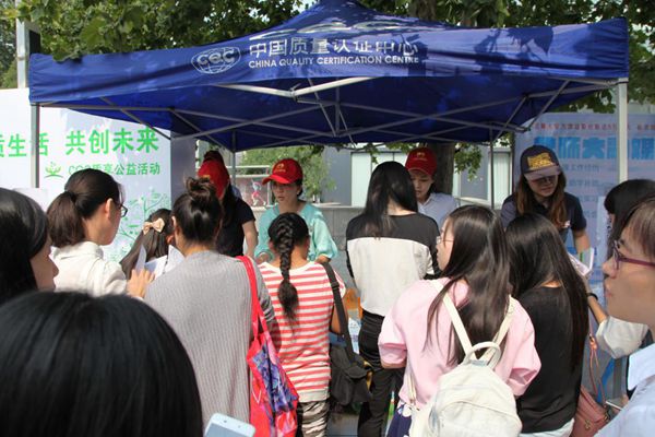 9月21日,中国质量认证中心(CQC)2015年质享公益活动来到了北京师范大学,此次活动是既CQC走进北京理工大学、北京航空航天大学之后的第三场进校园宣传,随着活动开展的不断深入,参与的人数也在不断增多,至此达到了又一个高峰。