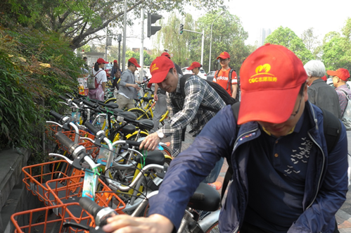 2017年4月15日,成都分中心党支部和工会小组牵头,组织和号召分中心20余名员工成立了志愿者小分队,开展了主题为“有序停车、文明出行”的志愿者服务活动,向公众倡导文明使用共享单车的理念。