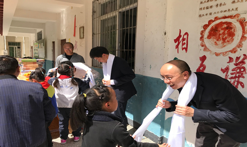 分中心负责人参加了捐赠仪式并发言,他鼓励学生们要志存高远,努力学习,勇于面对困难,等学成之时,要回报社会,建设家乡,为祖国作出应有的贡献。学生代表们也为捐赠代表献上了洁白的哈达以表感激。