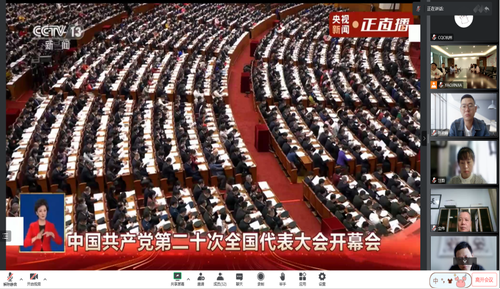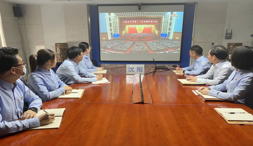 10月16日上午10时,沈阳分中心党支部组织全体党员和积极分子集中观看、学习党的二十大报告。