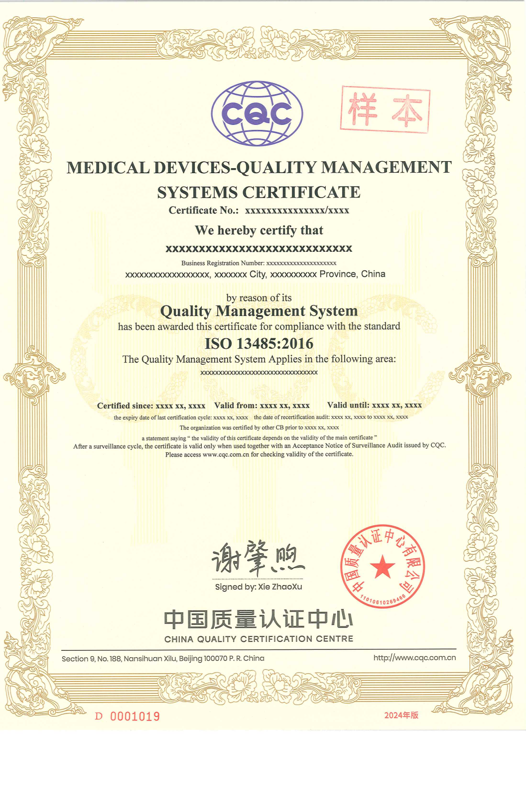 医疗器械-质量管理体系认证证书(ISO13485)