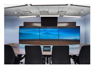 大型会议室会议:在较大的空间,几十人参与互动的会议/协作,可以选择一台高端的会议主机,这种主机支持协议多,可以保证非常稳定的视频连接,并且可以有效的降低带宽需求,降低总体部署成本。可以配3-4台65英寸以上的大屏显示器,可以营造出与远端的与会者同处一室的氛围。配套4-6个扬声器系统,可以有效的收音和降噪,获得非常好的声音效果。