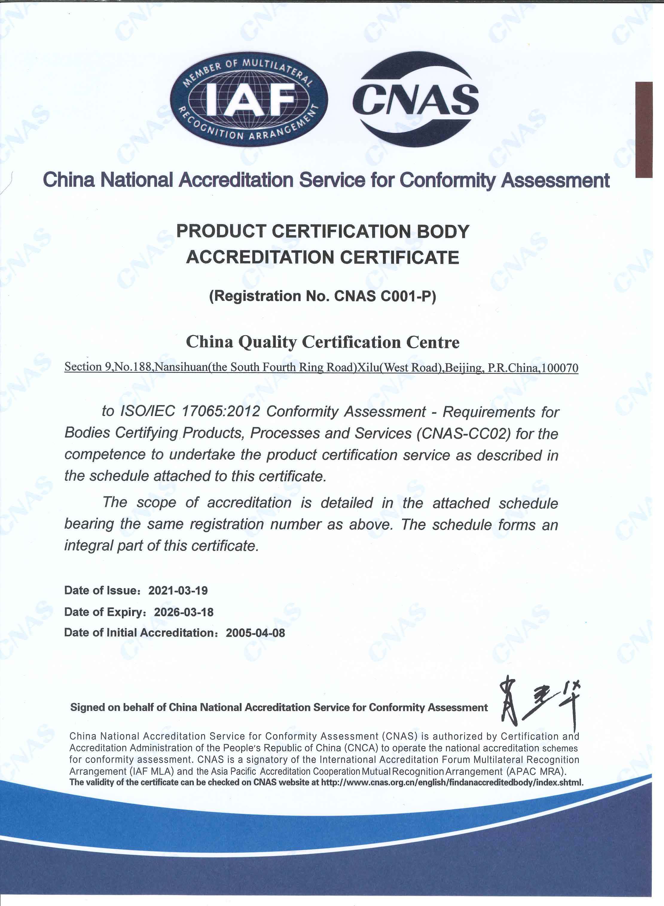 Hello, welcome to China Quality Certification Centre