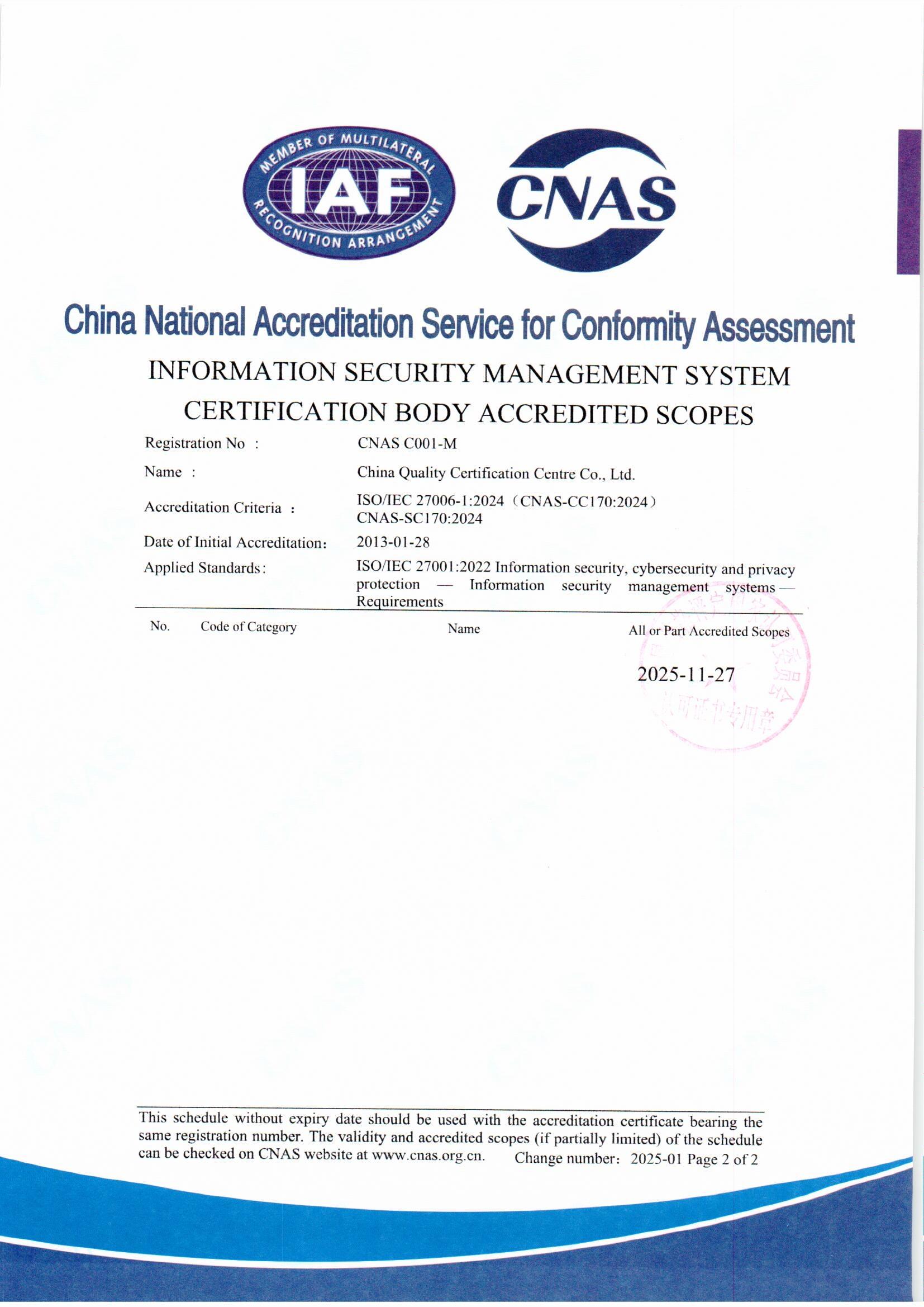 ISMS Certification Body Accredited Scopes