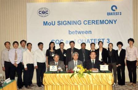 Based on the MOU, CQC and QUATEST 3 will intensify the bilateral cooperation in EE products certification based on IECEE CB scheme and also in areas of ROHS certification and energy labeling certification.