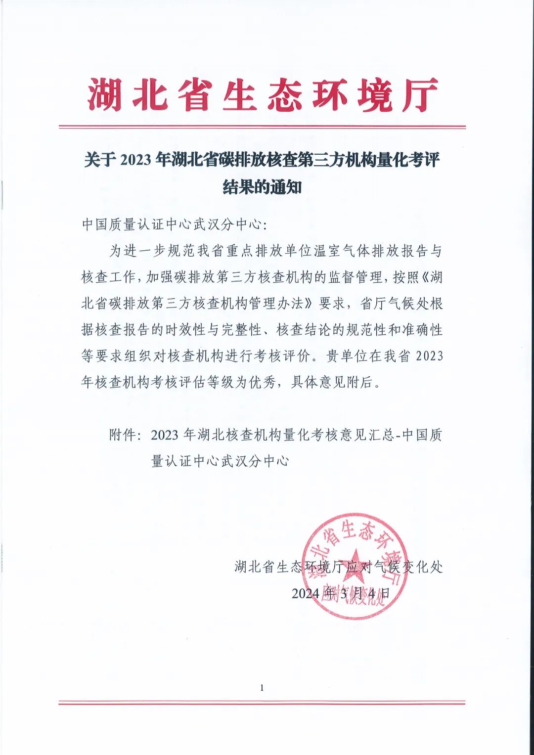 The China Quality Certification Centre's Wuhan Branch was recently distinguished with an "Excellent" rating in Hubei Province’s Third-Party Carbon Emission Verification and Quantitative Evaluation for 2023. This underscores its commitment to superior technical service and confirms the CQC's stature as a trusted quality organization in government and industry spheres. Organized by Hubei's authoritative entities, the assessment aims to advance the skill development of verification bodies and guarantee integrity in carbon market transactions.