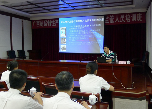 为加强广西壮族自治区认证认可执法监管工作,切实保障CCC认证有效性,6月26至27日,广州分中心与广西出入境检验检疫局在广西南宁联合举办了广西出入境检验检疫系统CCC认证监管和执法人员法律知识培训,共有来自广西区局、各地市分支局50余人参加。