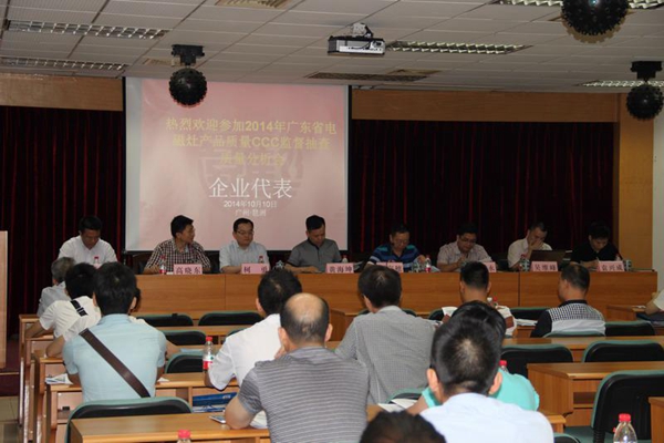 为贯彻国务院促进经济发展提质增效的精神,帮助认证企业提高认证有效性,降低质量风险。近日,广州分中心在广东省质量技术监督局的支持下,联合广东产品质量监督检验研究院在广州召开了2014年广东省电磁灶产品CCC专项抽查质量分析会。省质量技术监督局认监处领导、实验室代表和省内40多家电磁灶产品企业代表参加了会议。