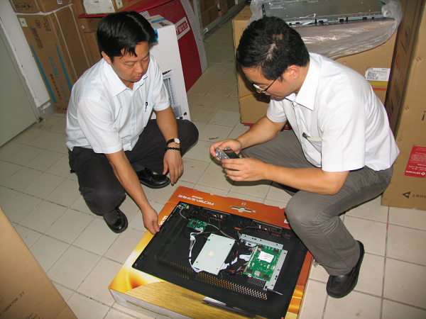 2011年8月12日,南京分中心联合地方质监局在淮安地区的家电卖场开展家电下乡市场核查工作,共完成了20个型号产品的现场核查,产品包括冰箱、洗衣机、电视机、计算机等类别。(南京分中心 供稿)
