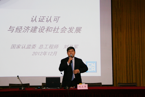 2012年12月6日,国家认证认可监督委员会总工程师刘卫军应邀为中认新能源学院全体学生400余人作《认证认可与经济建设和社会发展》专题讲座。