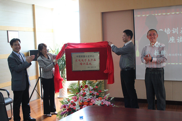 2015年10月9日,中国质量认证中心(CQC)首个家电电子类产品培训基地在中认英泰检测技术有限公司落成,中国质量认证中心副主任程秀芹以及培训中心、南京分中心相关负责人出席仪式。此基地将成为CQC重要的家电电子类产品服务窗口和培训课程实训基地,同时也是家电电子类产品培训项目研发和师资培养的核心机构。