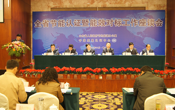 2011年11月29日,中心联合山东省人民政府节约能源办公室召开山东省节能认证暨能效对标工作座谈会。中心副主任陈伟出席会议,国防科工办、山东省中小企业办、山东省机械协会、山东省石化协会、山东省轻工协会、山东省纺织协会、山东省建材协会、山东省轻工联社、省内各地市节能办等40余家单位代表,及省内部分节能认证和能效对标优秀企业代表80多人参加。