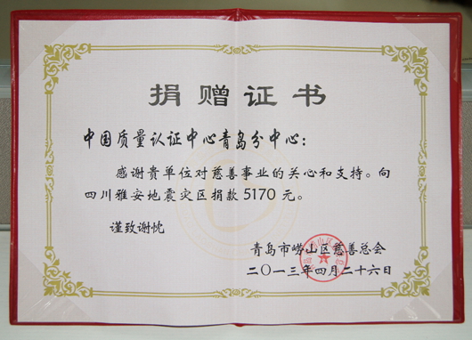 截至4月26日,青岛分中心向雅安地震灾区捐款共计5170元。 (青岛分中心 供稿)