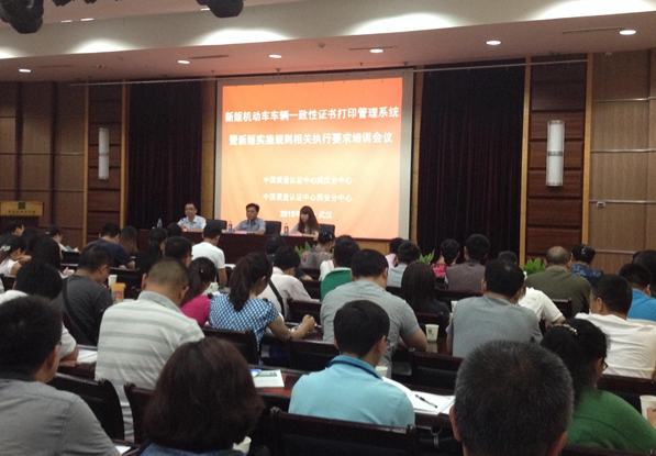 根据国家认监委要求,汽车、摩托车及摩托车发动机产品新版强制性认证实施规则和实施细则于2015年1月1日正式实施。为了使获证企业更好的掌握新版实施规则对车辆一致性证书的执行要求,顺利开展新版车辆一致性证书的切换工作,同时也为帮助企业更好的理解、贯彻新版实施规则其它有关执行要求,中国质量认证中心武汉分中心联合西安分中心于2015年6月4日至5日在武汉举办了培训会,来自武汉分中心和西安分中心所属辖区近200家企业认证相关人员参加了培训。