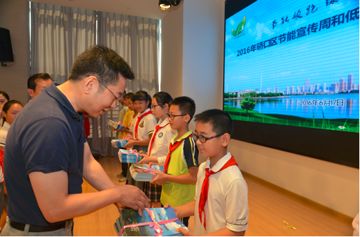 启动会上,分中心主要负责同志亲临现场,宣传节能低碳知识和分中心所做工作,介绍了由分中心编制的生态校园读本教材和宣传视频,并与武汉市发改委、硚口区政府、硚口区发改委、教育局等单位领导一起向来自硚口区各校的师生代表进行了现场授书。