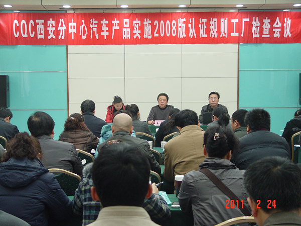 2011年2月24至25日,中国质量认证中心西安分中心举办汽车产品实施2008版认证规则工厂检查会,分中心辖区内的33家企业的60名代表参加。