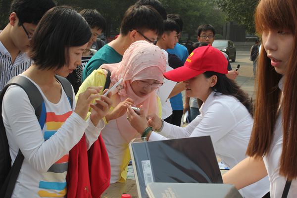 活动前期,西安分中心与西安建筑科大后勤中心以及学生会积极联系确定场地,并于活动前两天在学校醒目位置张贴宣传海报20余张。活动当天,西安分中8位志愿者着工装,戴宣传帽,为大学生发放宣传资料,详细介绍中心开展的主要业务并进行质量宣讲,还与学生就其感兴趣的衣食住行消费安全等问题进行了交流。大学生们现场扫描了二维码、关注“消费指南”微信,将线上活动信息分享至朋友圈,并在“品质生活 共创未来”的主题板上签名留影,现场气氛热烈。